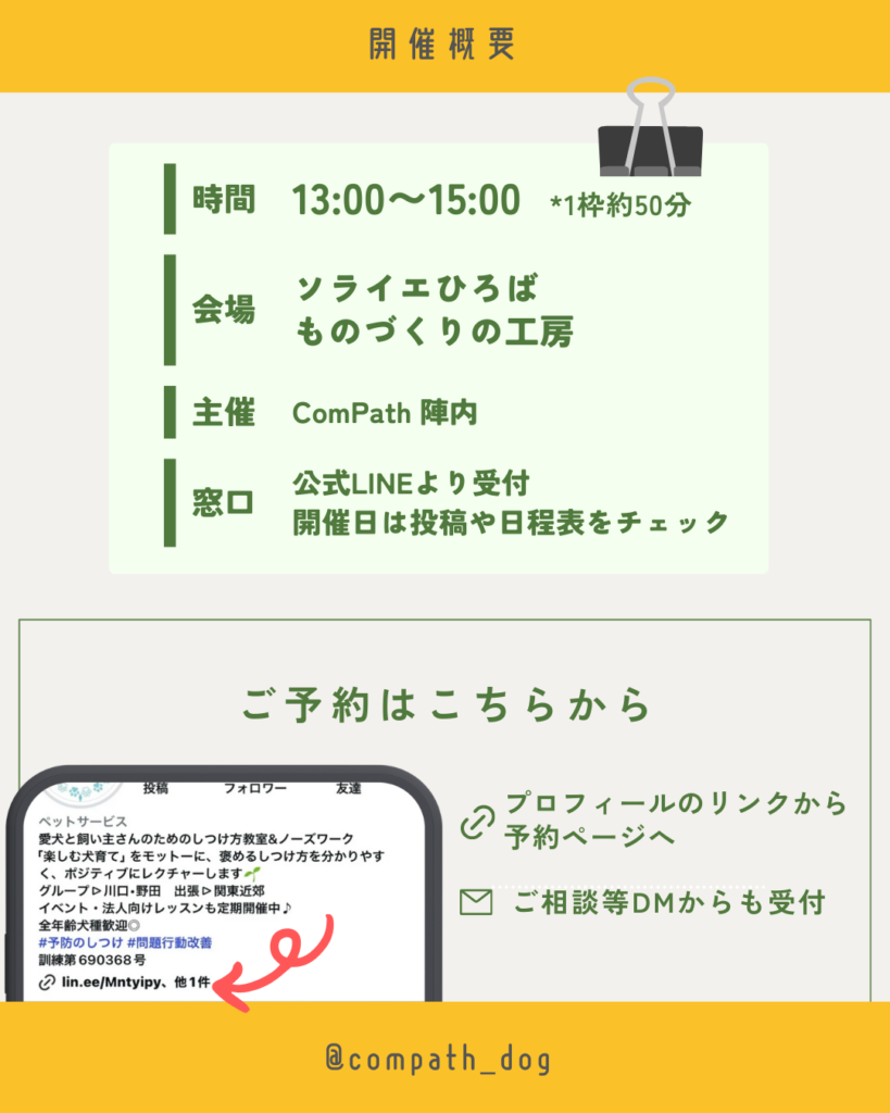 - こんな方に: 安全に人や色々なものに慣れさせたい、遊び方を知りたい方。ご相談したいことがある飼い主さん